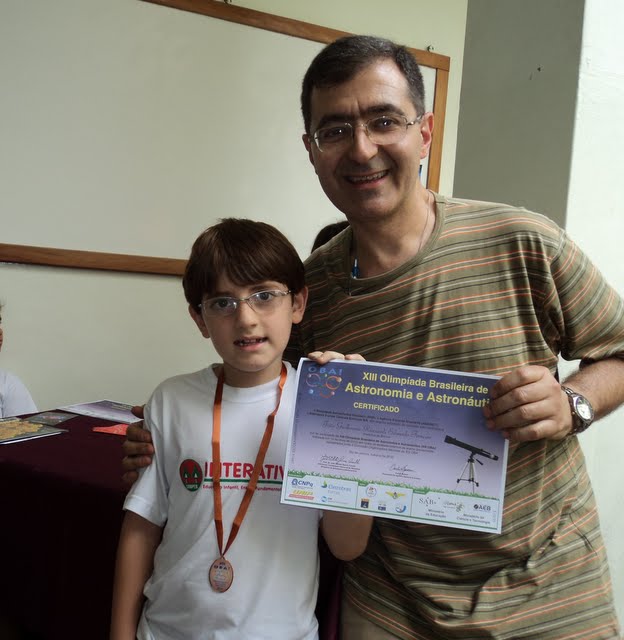 A Olimpíada Brasileira de Astronomia é um evento aberto às escolas públicas e privadas para alunos do 1° ano do Fundamental até o último ano do Ensino Médio. Realizada no mês de maio, os alunos se prepararam para as provas e tiveram bom desempenho. Os certificados foram entregues na Escola pelo professor de Física e Matemática, Luiz Smaira, inclusive as medalhas para os melhores classificados. O ex-aluno da Interativa, Lucas Smaira falou com os colegas sobre a importância de participar de uma Olimpíada e se preparar para as provas. Lucas Smaira participou de muitas Olimpíadas, recentemente participou da Olimpíada Latino-Americana de Astronomia, realizada na Colômbia, nesta recebeu Medalha de Ouro. Parabéns a todos os participantes.