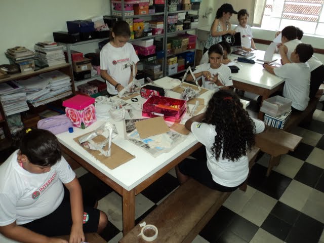 Os trabalhos na Oficina de Artes da escola, com a professora Lik, envolvem muita criatividade e disciplina. Os alunos do 5° ano EFI são expert no assunto.