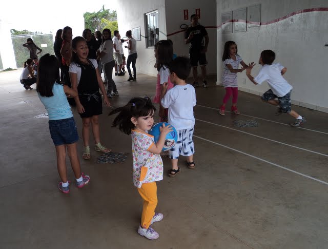 As turmas da Educação Infantil e Fundamental I prepararam um dia interativo para comemorarem o dia dos pais. Após a homenagem especial aos pais, começaram uma tarde juntos, brincando em diversas atividades, como bolinha de gude, pipa, queimada, bets, futebol, rolemã, peteca, entre outros. Entre as brincadeiras, o carinho dos filhos para com os pais foi marcante.