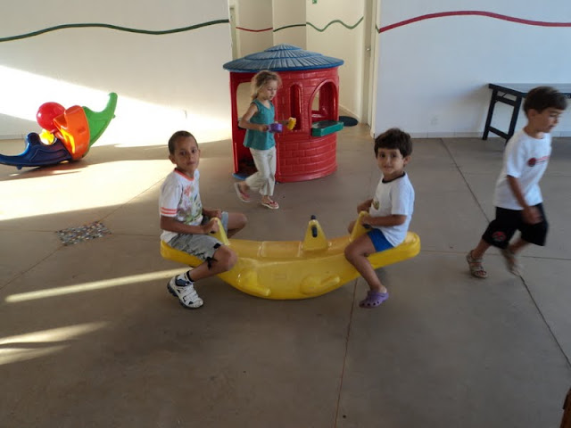 O brincar faz parte do mundo infantil. No Período Interativo, as professoras Sueli Barros e Helen Maria, trabalham atividades lúdicas todos os dias. As crianças gostam muito de fazer seus teatrinhos, atividade que desenvolve a memória, a atenção e a imaginação. Entre o café da manhã e o almoço tem a hora da fruta – com todas as atividades, a alimentação deve ser saudável para os pequenos. Além das atividades, todos gostam da caminhada, que é realizada dentro do espaço da escola, em plena área verde. Às sextas-feiras tem história contada na Biblioteca infantil da escola, pela bibliotecária Renata Santos, após a história participam de uma mini oficina. Tem a hora do desenho, onde desenvolvem habilidades importantes para esta fase.