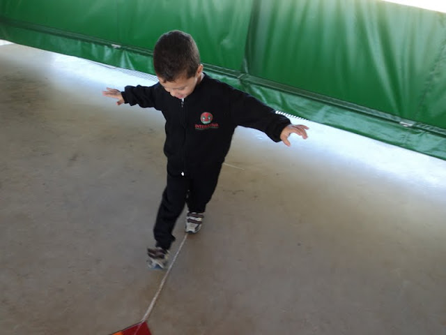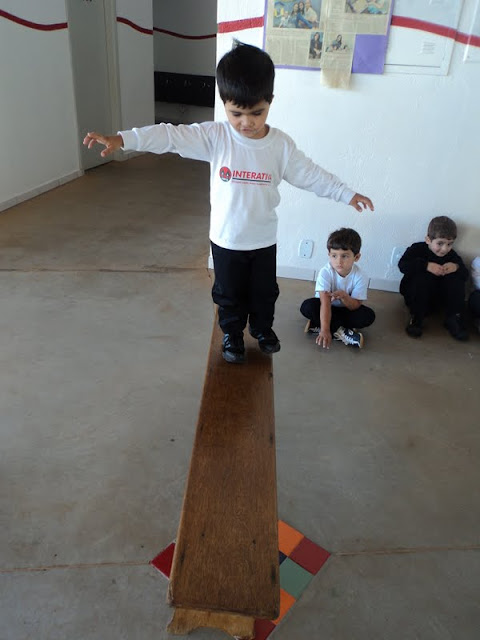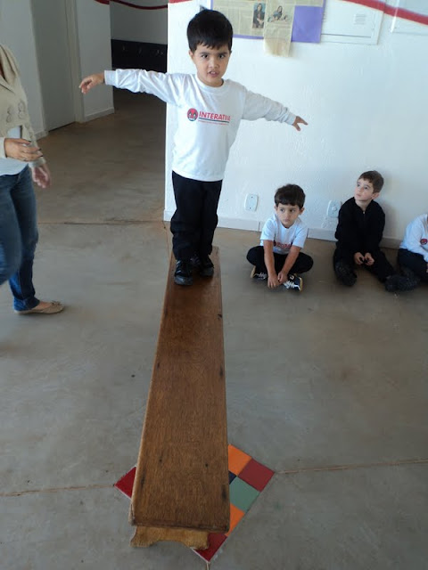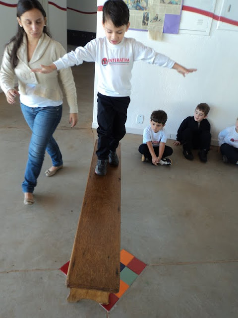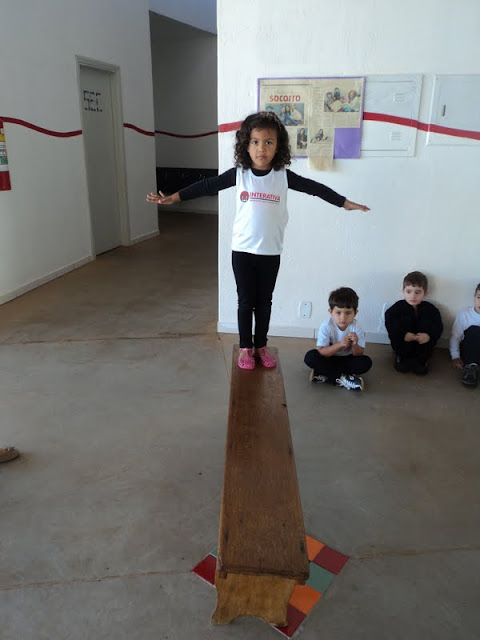 Os alunos do 1º Período, na Educação Infantil, tornaram-se equilibristas em uma atividade realizada no pátio da Escola. Uma simples tarefa, andar sobre a risca de giz, fez ficar ainda mais divertida a história na roda ” O equilibrista ” da autora Fernanda Lopes de Almeida. Legal!
