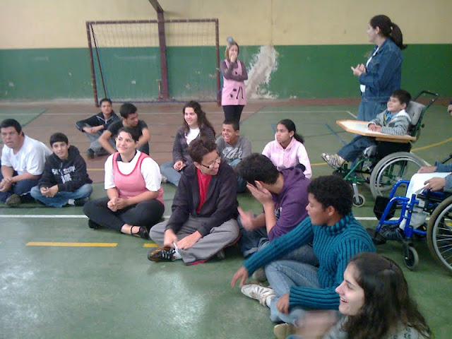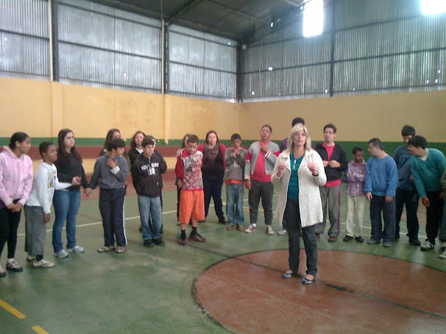 Aconteceu em todo o Brasil, a Semana Nacional da Pessoa com Deficiência Intelectual e Múltipla. A Apae de Guaxupé para conscientizar a sociedade contra o preconceito aos portadores de deficiência, trouxe uma programação especial, com o tema em destaque “Em busca de igualdade. Estamos aqui!”. Os alunos do 9º ano do Ensino Fundamental, através do trabalho de Dinâmica de Grupo, participaram deste encontro dando continuidade ao Projeto da Escola CIVILIZAÇÃO DA COMUNICAÇÃO. A professora Gilda Mara Moreira Leite, que acompanhou os alunos, é psicóloga e professora do 9º ano, e trabalha com questões sobre igualdade, ajuda mútua, preocupação com a sociedade e cooperação, levando os alunos à uma reflexão. Após este encontro serão abordados em sala, assuntos relacionados à fatores que dificultam a comunicação e COMO AJUDAR para um bem maior.