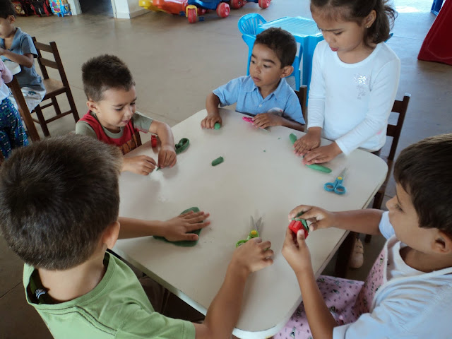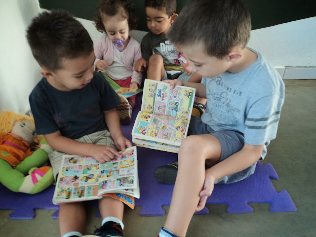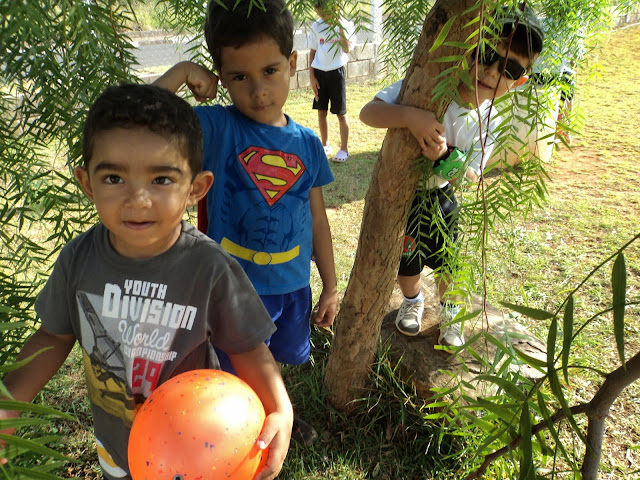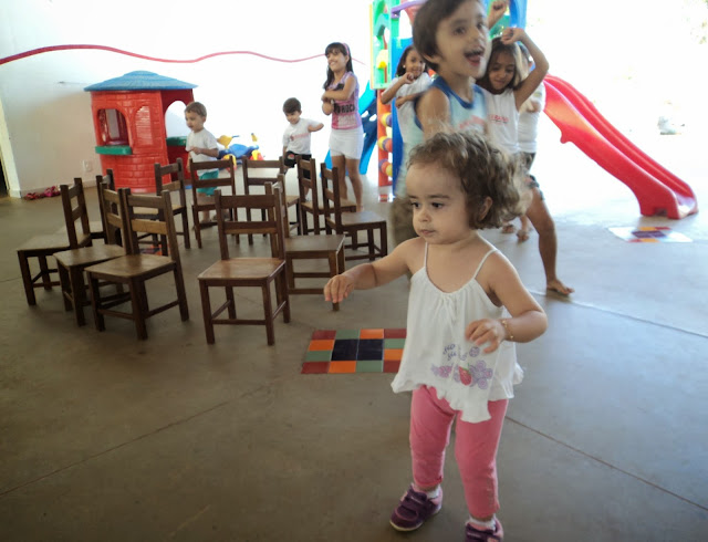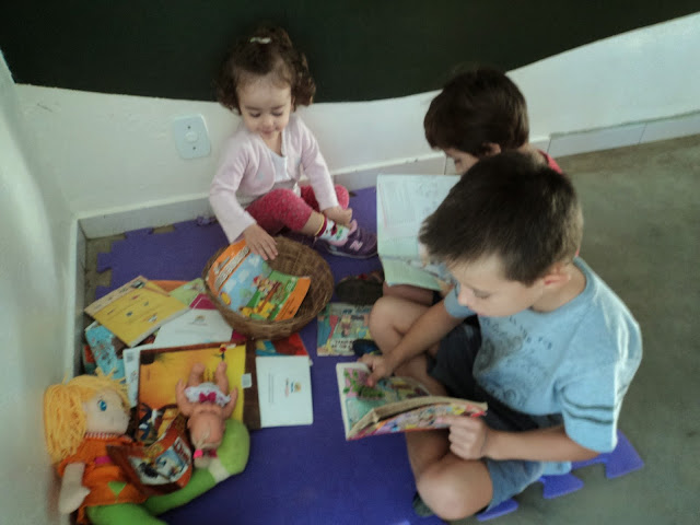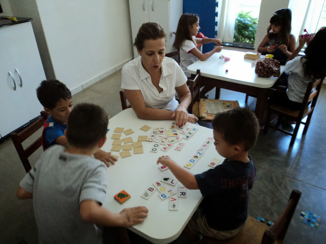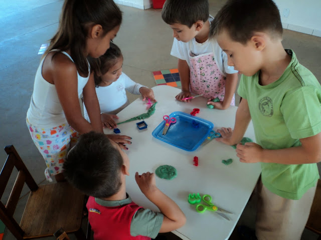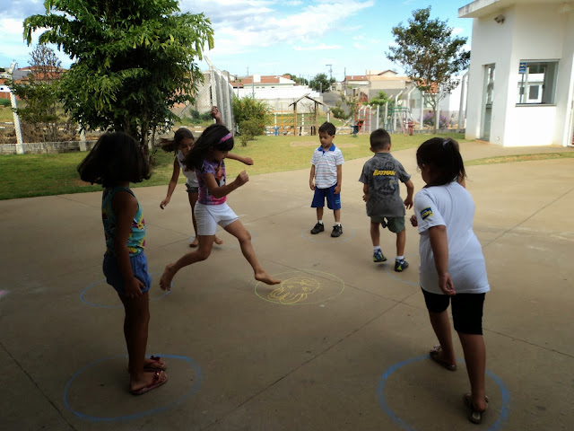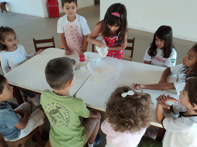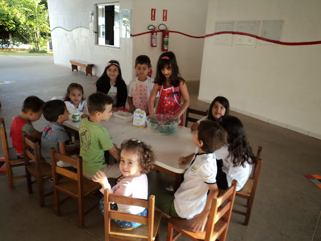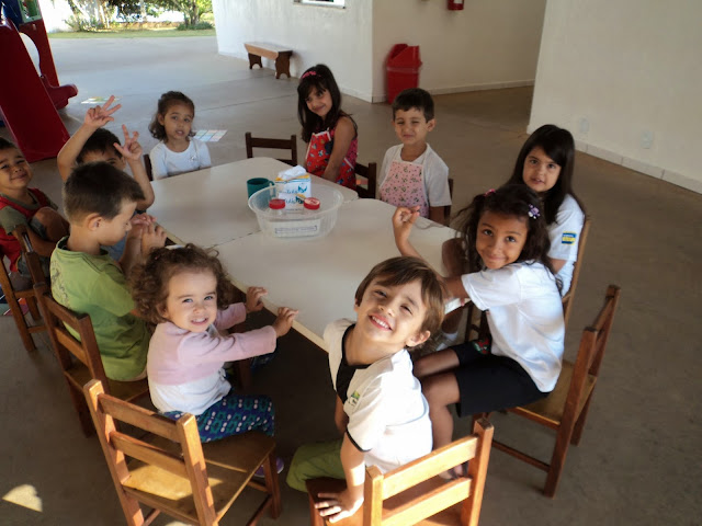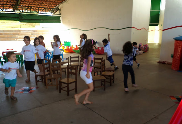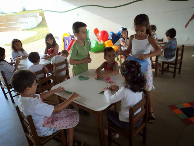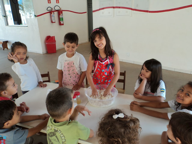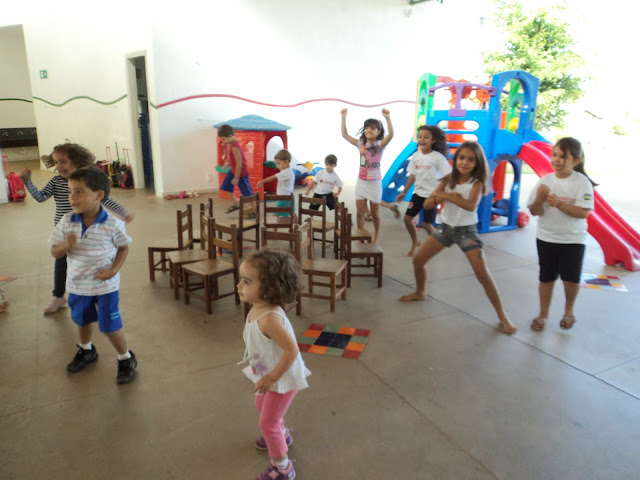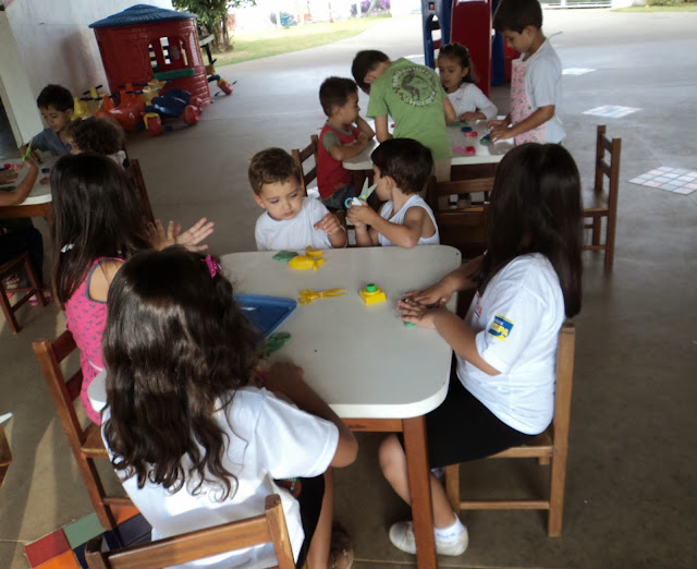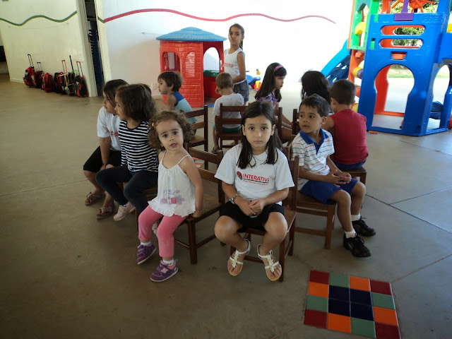 São muitas brincadeiras no Período Interativo, as professoras resgatam brincadeiras antigas como corda, dança da cadeira, etc. Tem contação de histórias, jogos para estimular o raciocínio e concentração, cantinho da leitura, tem o dia de culinária onde aprendem receitas (como a receita massinha e outras), tem oficina de sucata. Tem muito mais aqui no Período Interativo.