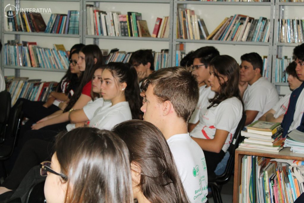 Alunos do Ensino Médio e cooperados assistiram na quarta-feira (25) palestra ministrada pelo engenheiro agrônomo Antônio Carlos Fidélis da Cooxupé, um dos multiplicadores da “Gestão de Finanças Pessoais”.
