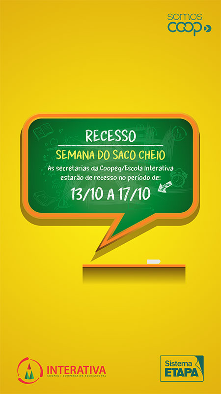 As secretarias da Coopeg/Escola Interativa estarão de recesso no período de 13 a 17 de outubro.