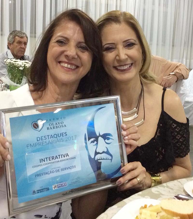 A Coopeg / Escola Interativa recebe o Prêmio Olavo Barbosa – Destaques Empresariais 2017 na categoria – Prestação de Serviços pela Associação Comércio e Indústria de Guaxupé (ACIG). Nossos agradecimentos em nome de toda equipe Coopeg / Interativa.