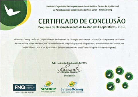 Coopeg recebe certificado de conclusão e honra ao mérito do Programa de Desenvolvimento da Gestão das Cooperativas. No dia 05 de maio a presidente da Coopeg Beatriz R. do Valle Antonelli e a diretora Gisela F. Nehemy estiveram presente no Lançamento do 3º Ciclo do PDGC no Centro de Convenções da Unimed em Belo …