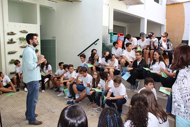 A Escola Interativa participou, nesta manhã de terça-feira (29), da 3ª Feira Literária – Café com Letras com o recital “As pessoas do Pessoa” apresentado pelo professor Ítalo Coragem e estudantes do Fundamental II e Médio. As vozes se encontraram no palco em “Não, não digas nada” do compositor João Ricardo e em “Cruzou por …
