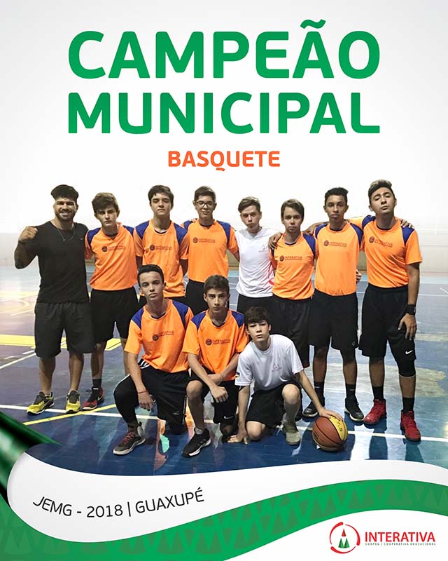 O time de basquete da Escola Interativa se consagra campeão na etapa municipal do JEMG – 2018 (Jogos Escolares de Minas Gerais) Basquete masculino módulo 2 A Coopeg / Escola Interativa parabeniza os estudantes por essa conquista!
