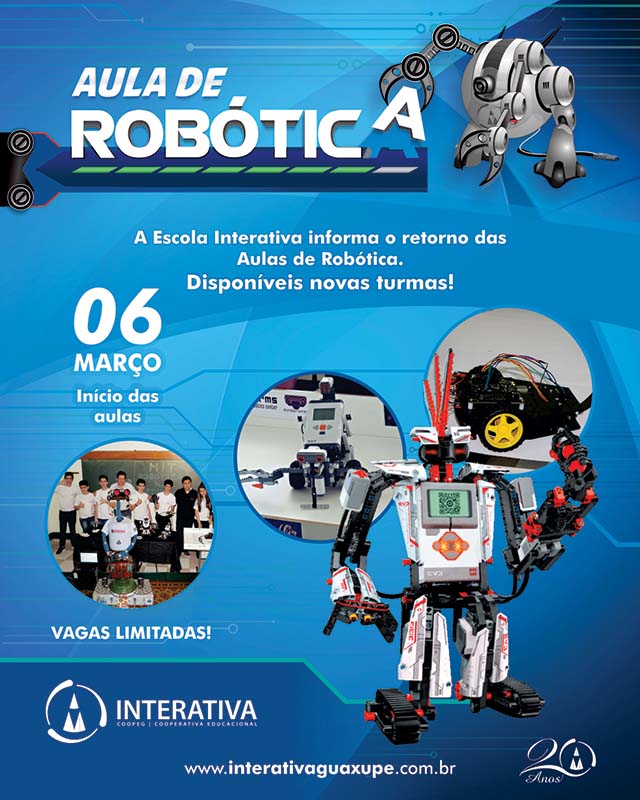 A robótica educacional trabalha o conhecimento de diversas disciplinas com uma série de benefícios aos alunos, dentre os quais podemos destacar o raciocínio lógico, trabalho em equipe e criatividade. A Coopeg / Escola Interativa informa o retorno das Aulas de Robótica e a nova turma – nível 1 para alunos do 6º ano. Os interessados …