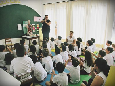 As professoras Juliana Souza e Beatriz Vieira, trabalham sequência didática de leitura e escrita com o suporte do autor Luís Camargo, utilizando a coleção Lagarta Pintada, especialmente o livro “Maneco Caneco Chapéu de Funil”. Como interdisciplinariedade a farmacêutica-bioquímica, Grasiela dos Santos Vieira, visitou as salas do 3º período e conversou com a turma sobre o …