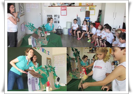 A biblioteca prepara para os alunos na última semana de biblioteca, uma história com cenários e personagens. Desta vez, foi diferente a história foi contadas nas duas línguas línguas – Português e Inglês. A professora de Inglês, Sandra Mancini, contou “Little Red Riding Hood” e a bibliotecária Renata Siqueira contou “ Chapeuzinho Vermelho”. Depois da …