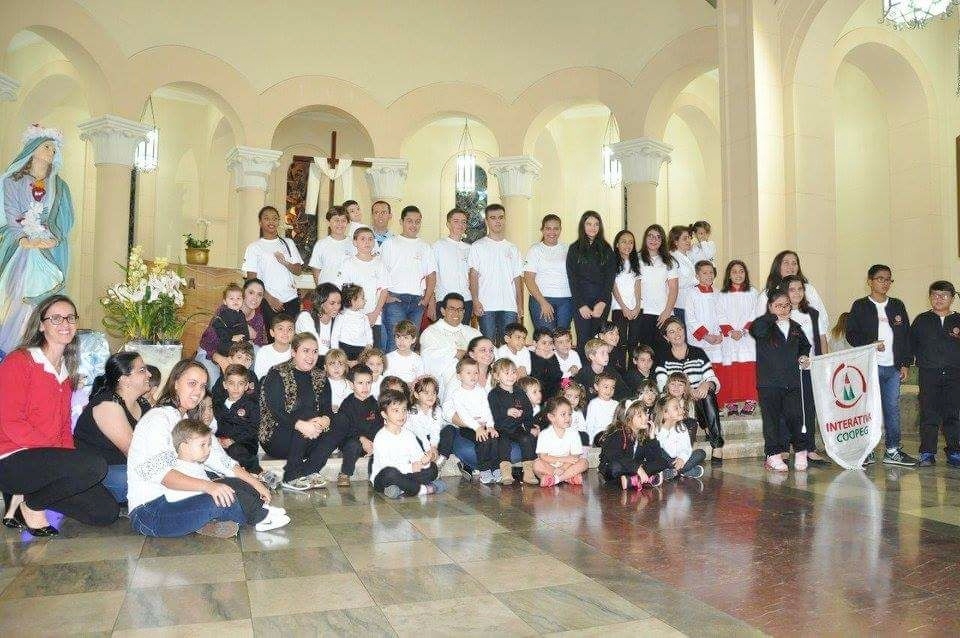 Alunos da Escola Interativa, familiares e professores participaram da coroação de Nossa senhora, juntos num só momento de fé e devoção. A coroação é tradição no mês de maio que acontece na Catedral de Guaxupé. _ Fotos retiradas – Facebook Catedral Guaxupé