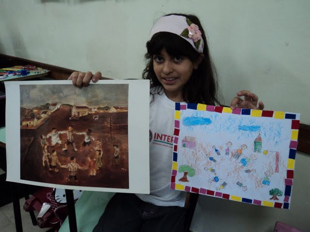 A biografia do pintor Candido Portinari foi apresentada ao terceiro ano, pelos livros “Encontro com Portinari” e “Candido Portinari – Filho do Brasil, orgulho de Brodowski!“. A professora Viviana Pires trouxe para a sala fotos de algumas obras mais conhecidas. Após aprenderem sobre sua infância, levaram para casa uma entrevista, precisavam saber quais as brincadeiras preferidas de seus pais. Fizeram em sala uma coleta de dados e conseguiram observar que as brincadeiras se relacionavam com as pinturas, como queimada, esconde- esconde, pega-pega, corda, amarelinha, elástico, futebol (de rua mesmo), entre outras. Fizeram a releitura do quadro “Ronda Infantil”. Depois da oralidade, onde cada criança apresentaram detalhes que compunham as telas, foram convidadas a ilustrar com seus próprios traços. Mais obras foram apresentadas às crianças como “Brodowski“, “Circo”, “Futebol” entre outras. Para o enriquecimento do trabalho foi realizada uma viagem até a cidade de Brodowski, onde viveu o pintor Candido Portinari e sua família.