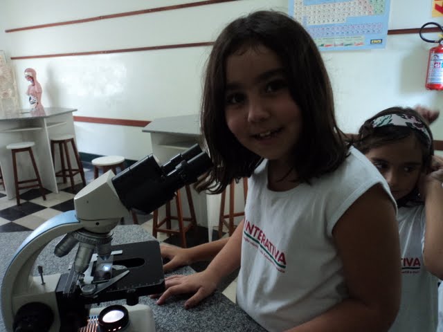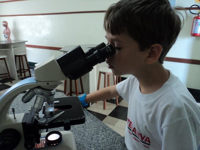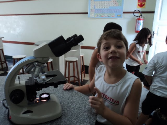 No Laboratório de Ciências, alunos do 2º ano EFI, observaram como ocorre a reação química do fermento biológico usado na massa do pão. Os alunos ficaram encantados ao visualizarem a reação, através do microscópio.