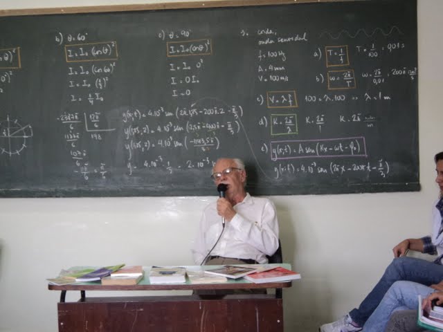 Para a abertura do 9º Fórum Interativo, com o tema “Descobertas e invenções que mudaram o mundo”, recebemos o professor e grande autor Moacyr Costa Ferreira. Com 83 anos já publicou mais de cem obras nos gêneros didáticos, instrutivos, romances, poemas, dicionários, entre outros. Formado em Matemática, Física e Desenho pela Faculdade de Filosofia, Ciências e Letras de Guaxupé e pós-graduado em Física, Sr. Moacyr contou um pouco da história de sua vida e de seus primeiros experimentos – que começaram bem cedo, tendo total atenção dos alunos.