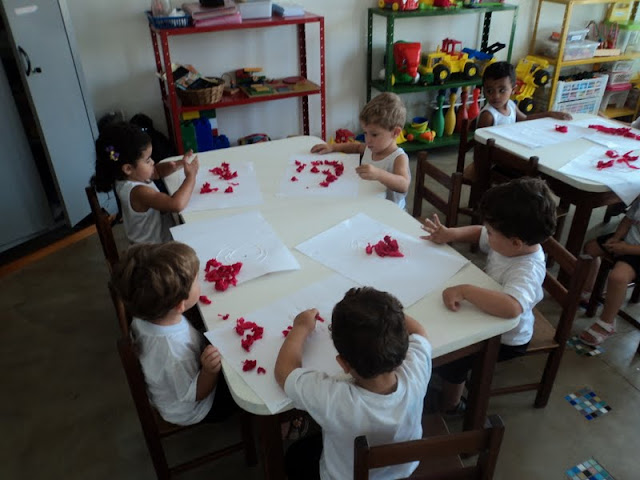 Algumas atividades realizadas pelos alunos do Maternal II, nos meses de fevereiro e março; trabalhando com massinha, colagem com papel crepom, hora deliciosa do lanche, aula de musicalização com a professora Deise, ah… não podemos esquecer da hora da leitura…