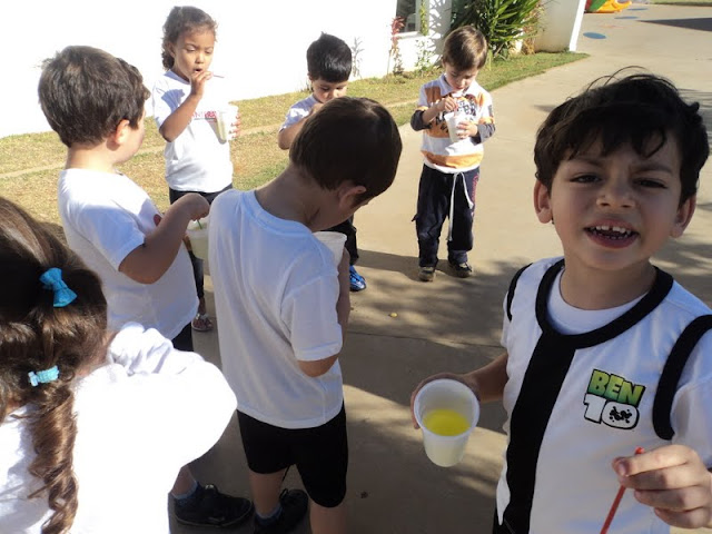 Em cada assopro uma bolha. Com poesia os alunos do 1º Período se divertem entre as bolhas de sabão. Veja as fotos da atividade: