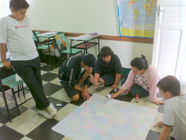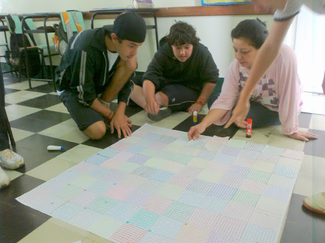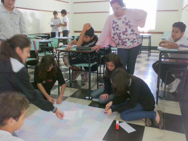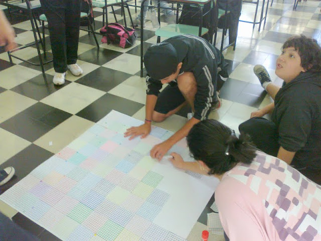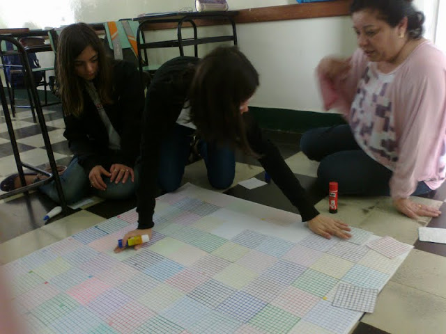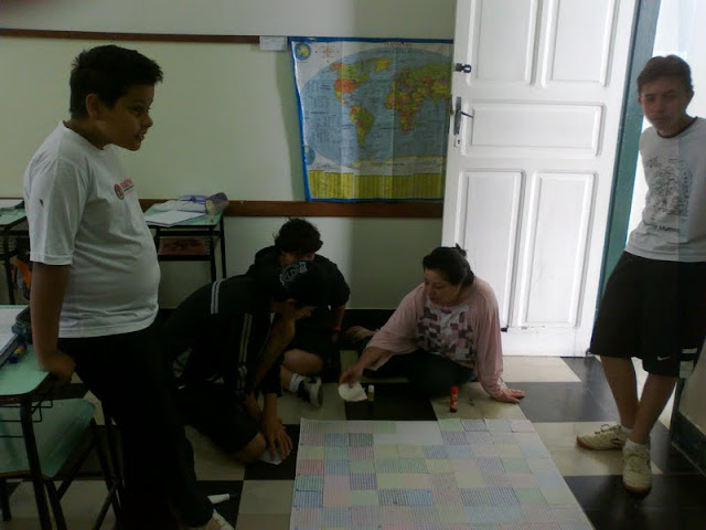 A matemática ficou descomplicada na aula da professora Vilmara Preto Narciso. Os alunos do 7º ano fizeram o metro quadrado (m²). Como medimos comprimento, também medimos superfícies planas; assim com o desenho pode-se verificar quantas vezes a unidade de medida cabe na superfície que se quer medir: metro, decímetro, centímetro. Com a interação da professora e alunos há maior participação e aprendizado, tornando a aula mais interativa.