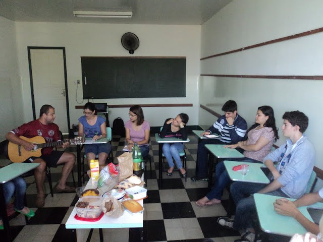 Um café da manhã aconteceu na sala do 2º ano do Ensino Médio. A professora Laise Vieira colaborou para um final de período escolar diferente com o “Café e Poesia”, reunindo as performances literárias dos alunos do Ensino Médio.