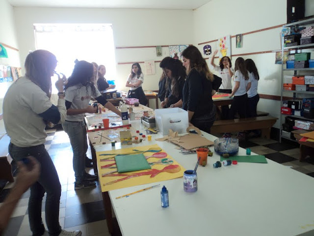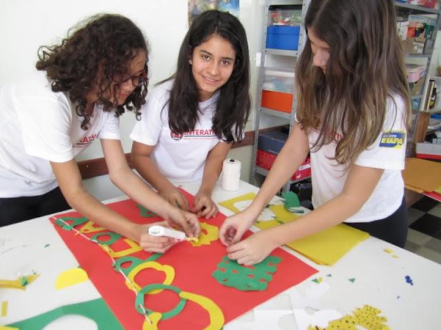 Em continuidade às comemorações do Dia Internacional do Cooperativismo, a Equipe do Cooperativismo trabalhou, com as turmas de Fundamental II e Ensino Médio, quatro momentos: Sala de Artes, com expressão artística em cartazes voltados à palavra COOPERAR/COOPERAÇÃO; Sala de Informática, elaboração de um texto com o mesmo tema; Biblioteca com enigma e no Pátio, uma turma grande trabalhou com o teatro.