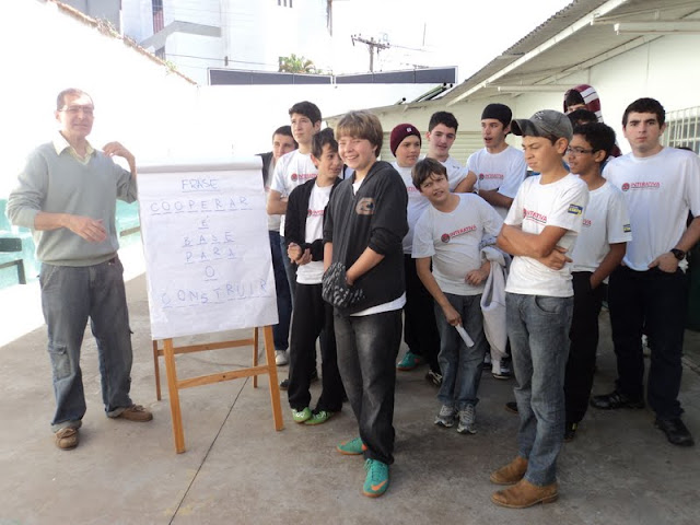 Finalizamos com um um encontro “formando um único nó”, assistimos o vídeo da música do cooperar “Assim se faz melhor” (de Ítalo Coragem e alunos do 6º ano/2012). Este vídeo foi realizado pelo aluno do 1º EM, Gabriel Rezende de Souza.