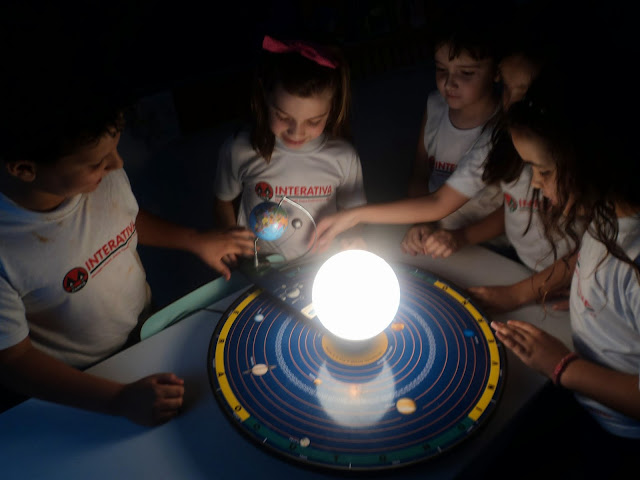 Em Ciências, o conteúdo teórico desenvolvido em sala de aula é muito importante. A professora, Sueli Barros, trouxe o planetário para aprofundamento da disciplina que tornou a aula prática e educativa. A atividade dinâmica enriqueceu todo o conteúdo abordado em sala. Eclipse solar, lunar, posicionamento dos astros, fases da Lua, são observados claramente no planetário do laboratório de Ciências, com intervenções e questionamentos da professora.