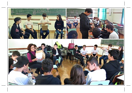 A dinâmica “Presente Surpresa” desenvolvida pelos alunos do 7º ano, tinha como objetivos as formas de enfrentamento com o “novo”, trabalho com expectativas, frustrações e possíveis medos. A dinâmica consistia em um “presente surpresa” dentro de vários embrulhos, os alunos se organizaram em um círculo com uma trilha sonora ao fundo, o presente ia passando …