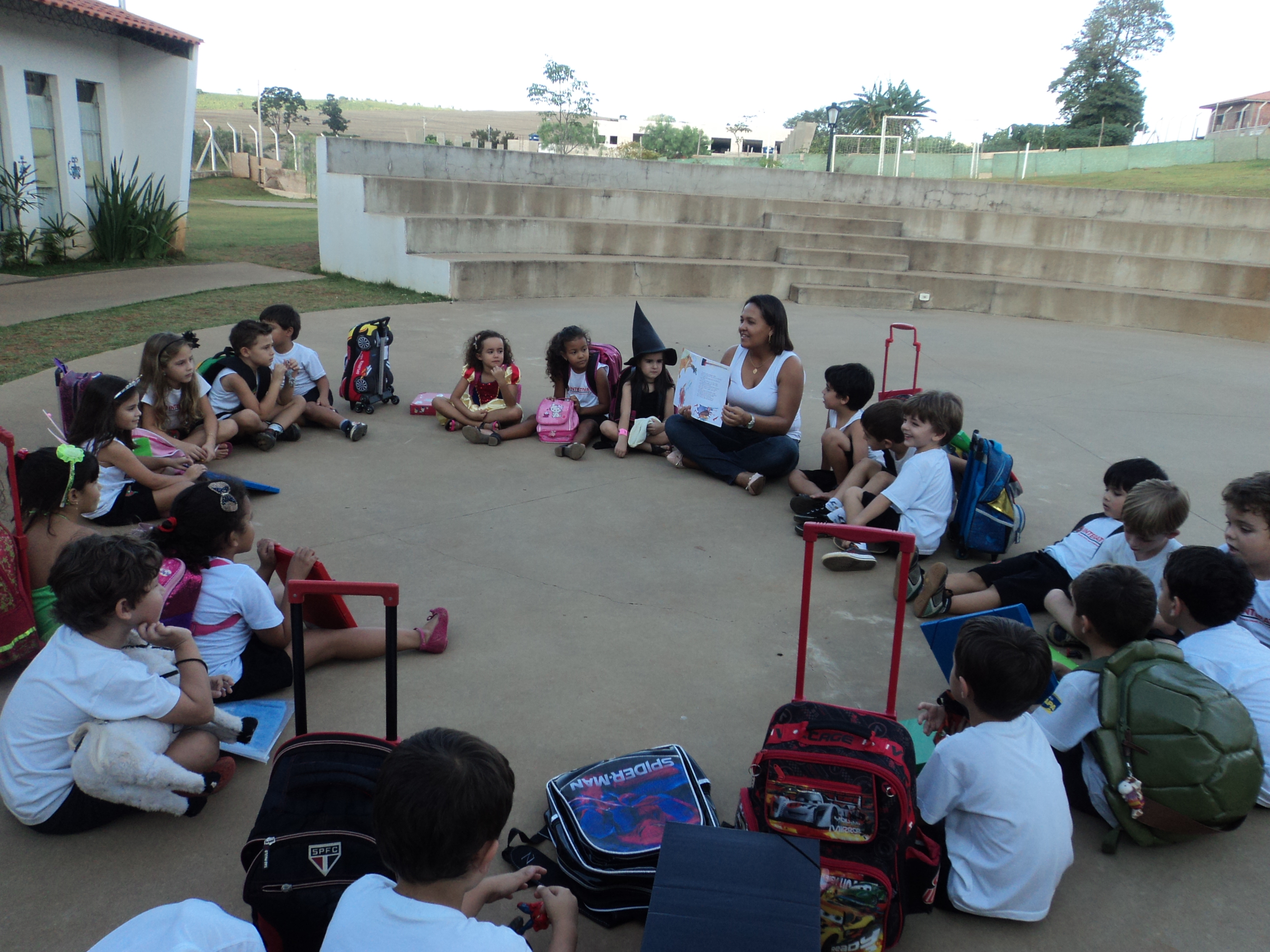 “A turma do 3º Período, da professora Juliana Souza, gosta muito de história. Antes de abrir o portão para a saída (faltavam uns cinco minutos mais ou menos) flagrei todos em uma roda , quietinhos ouvindo uma história. Era a história do livro que um aluno da sala levou. Como é bom ver as crianças …