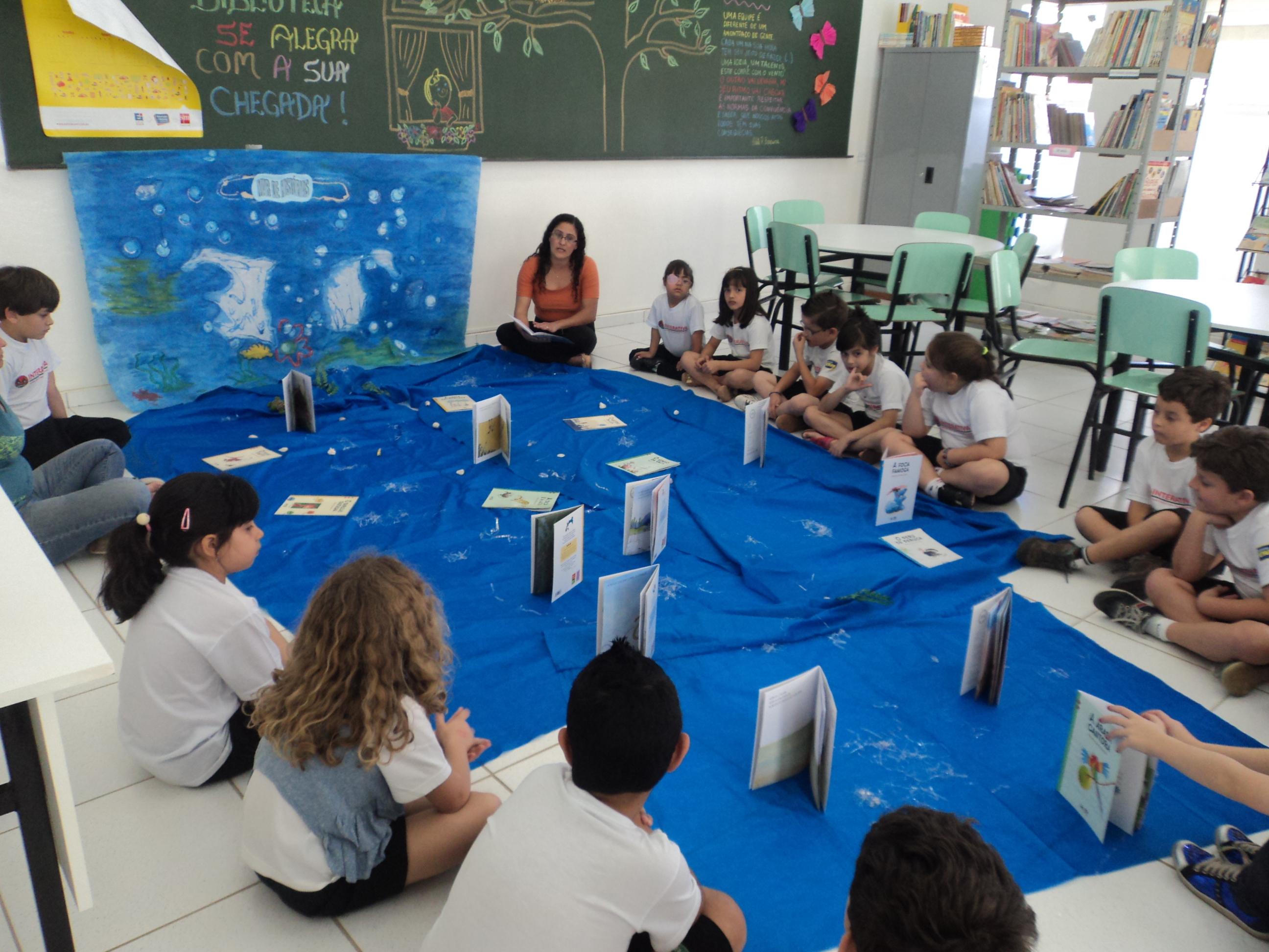 Conchinhas, estrela do mar, peixes e tartaruga marinha na biblioteca? E muitos livros também. O mar na biblioteca estava para livros. Não precisou de roupa de mergulho, o mar profundo só tinha histórias… A bibliotecária selecionou para os leitores do 1º ano, livros novos com narrativas simples organizadas em frases curtas e com predomínio de …