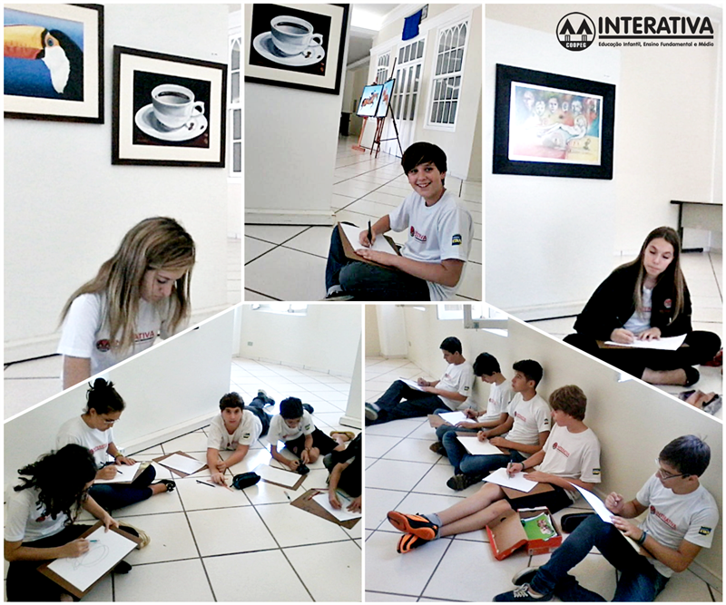 Em visita à exposição do artista plástico Cassio Nasser no Teatro Municipal, os alunos do 8º ano juntamente com a professora Lik aproveitaram a oportunidade e desempenharam uma atividade para aula de artes, desenhos inspirados nas obras do artista.